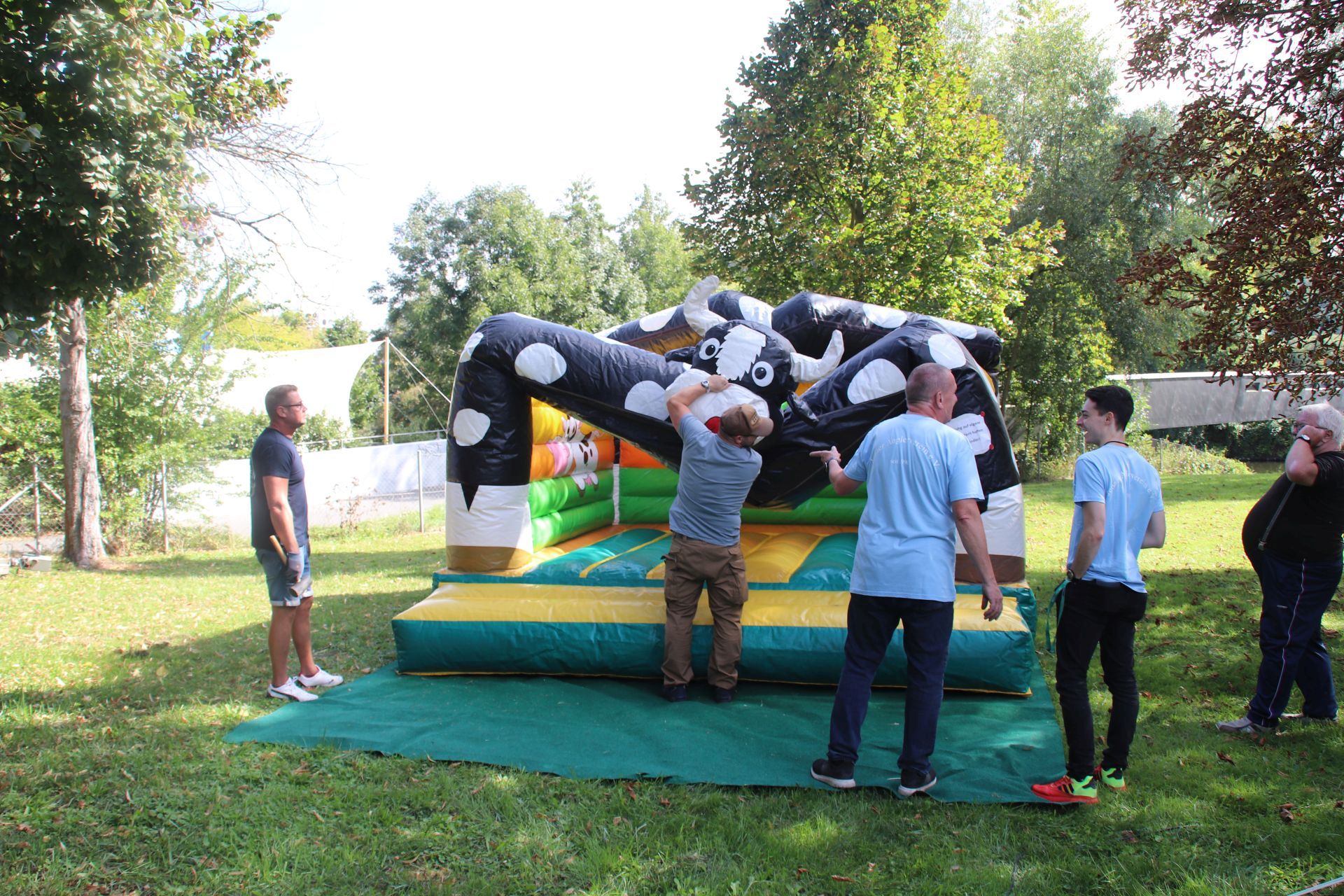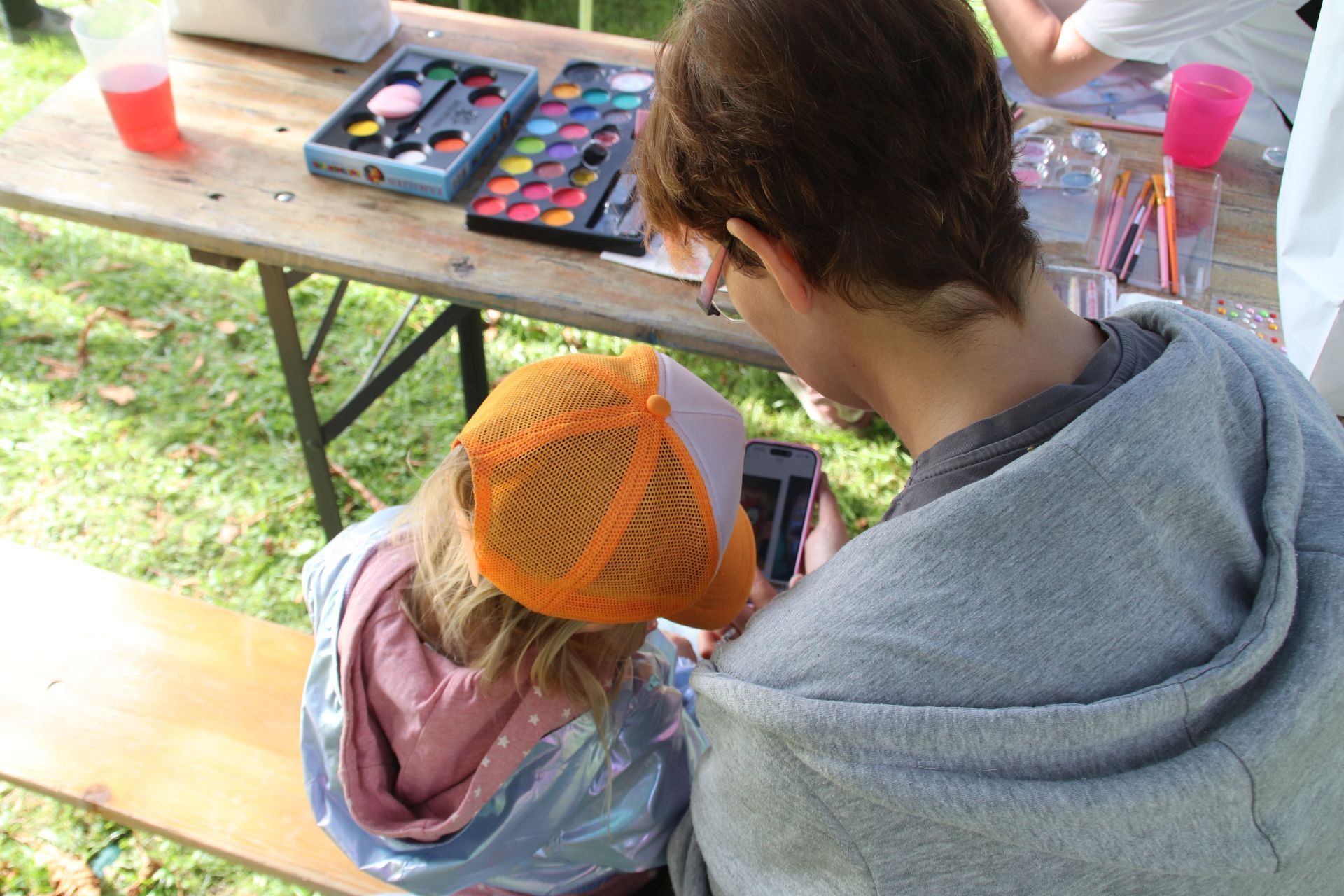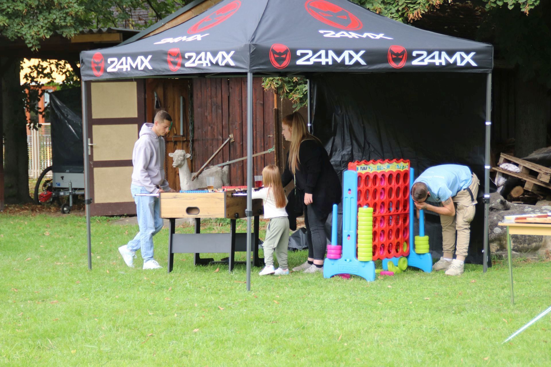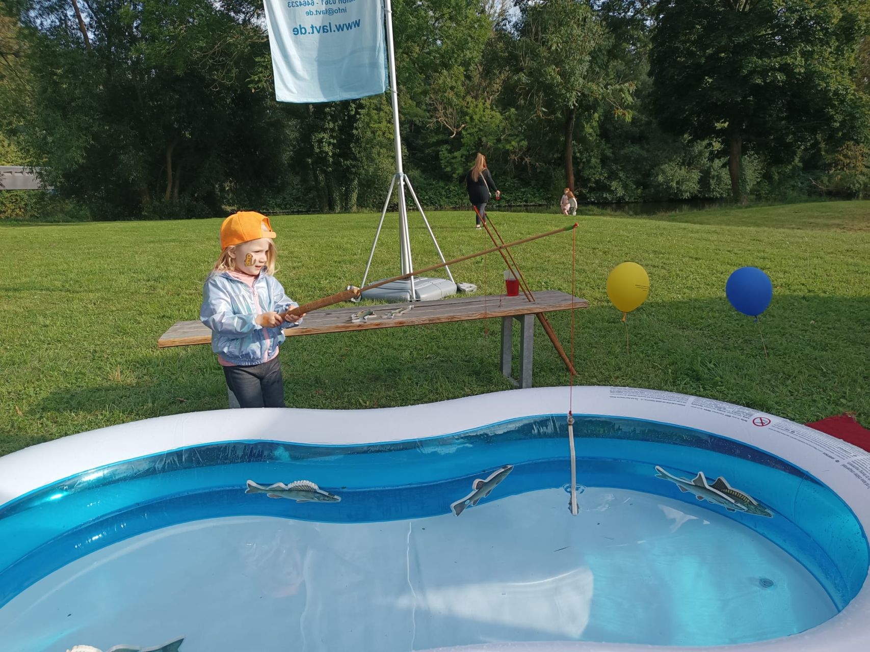 Nach den Eröffnungsreden wurde dann das Kaffee- und Kuchenbuffet, der Verkauf der Tombola Lose, sowie auch unsere Spiel- und Spaß Attraktionen eröffnet. Es gab jede Menge zu entdecken. Der LAVT hatte den Drillsimulator mitgebracht, es durften im Wasserbecken Plastikfische geangelt werden, Kinder wurden geschminkt, es wurde auf der Hüpfburg gesprungen, Fußballkicker gespielt und vieles mehr. Die Feuerwehr und die Polizei waren auch jeweils als Gäste vor Ort, um den Kindern (aber auch Erwachsenen) etwas zu zeigen oder auch um Gespräche zu führen. Wer sich etwas ausruhen, aber dennoch in Bewegung bleiben wollte, hatte die Möglichkeit sich mit dem Sun eMobil durch das Gelände fahren zu lassen.