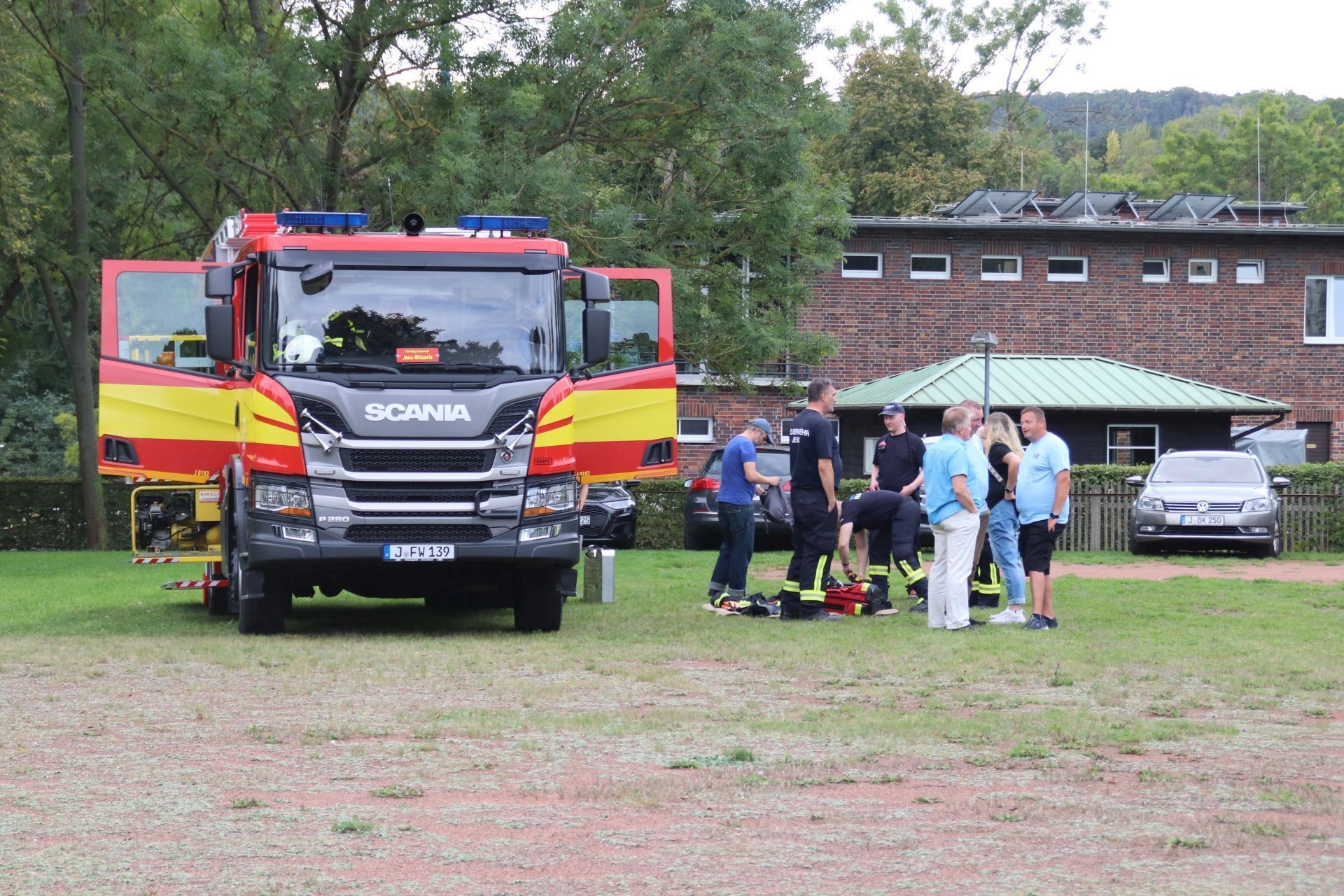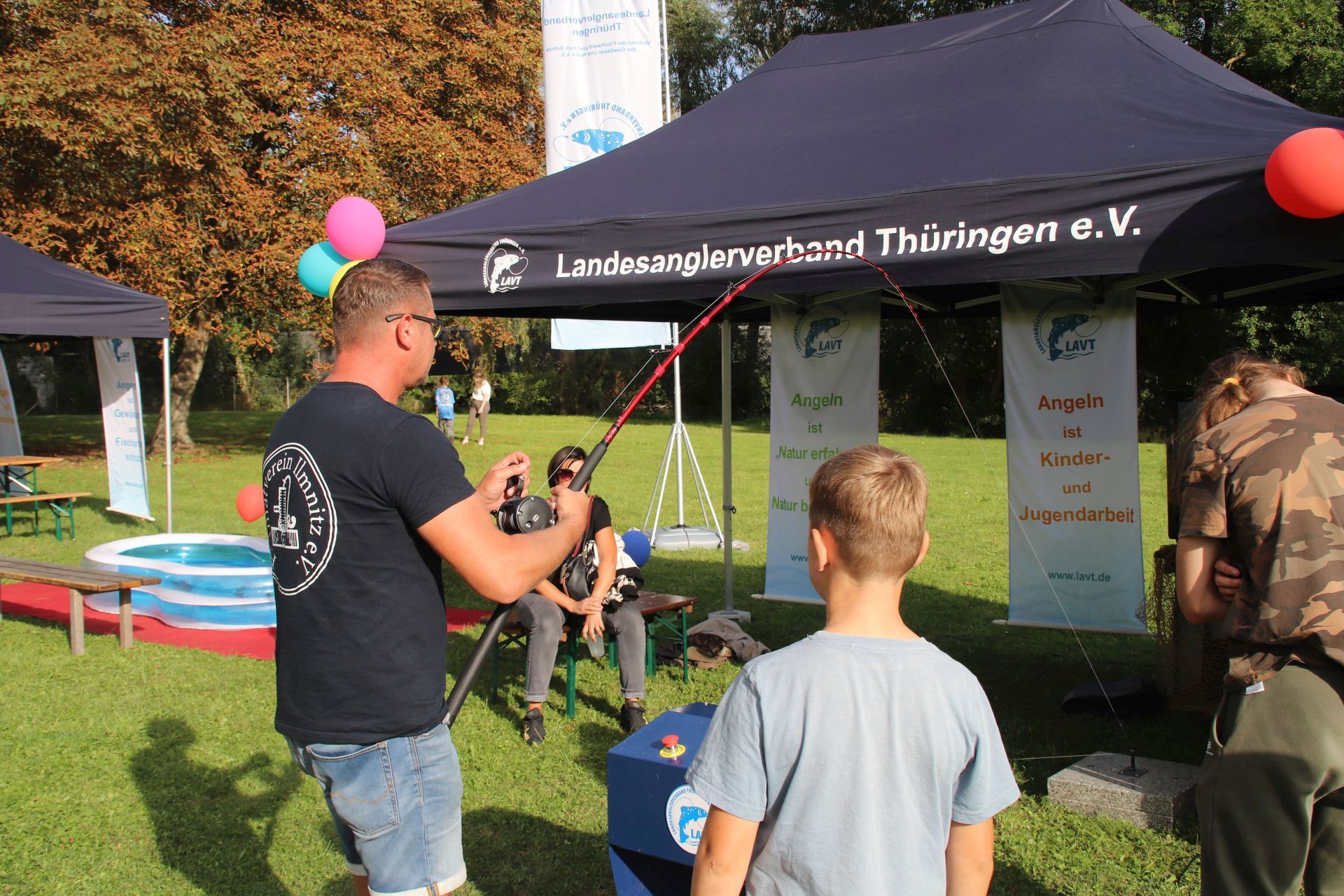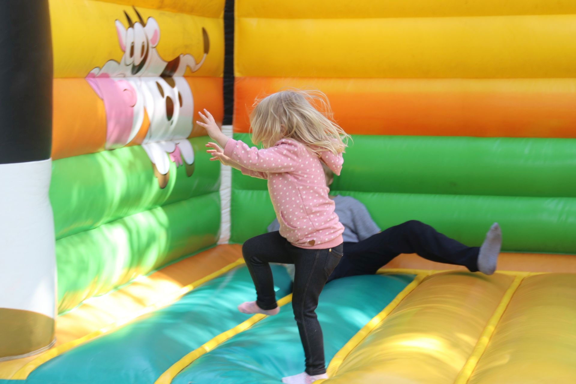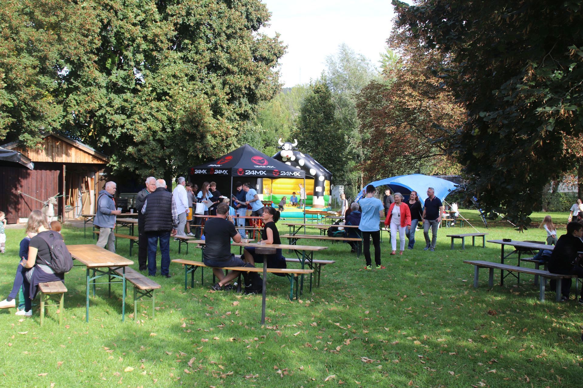 Nach den Eröffnungsreden wurde dann das Kaffee- und Kuchenbuffet, der Verkauf der Tombola Lose, sowie auch unsere Spiel- und Spaß Attraktionen eröffnet. Es gab jede Menge zu entdecken. Der LAVT hatte den Drillsimulator mitgebracht, es durften im Wasserbecken Plastikfische geangelt werden, Kinder wurden geschminkt, es wurde auf der Hüpfburg gesprungen, Fußballkicker gespielt und vieles mehr. Die Feuerwehr und die Polizei waren auch jeweils als Gäste vor Ort, um den Kindern (aber auch Erwachsenen) etwas zu zeigen oder auch um Gespräche zu führen. Wer sich etwas ausruhen, aber dennoch in Bewegung bleiben wollte, hatte die Möglichkeit sich mit dem Sun eMobil durch das Gelände fahren zu lassen.