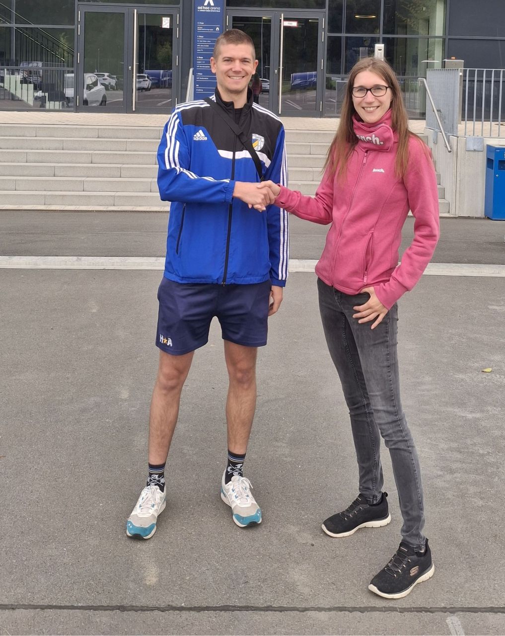 Veranstaltung noch mit Lukas Rödger vom FC Carl Zeiss Jena um das unterschriebene Trikot