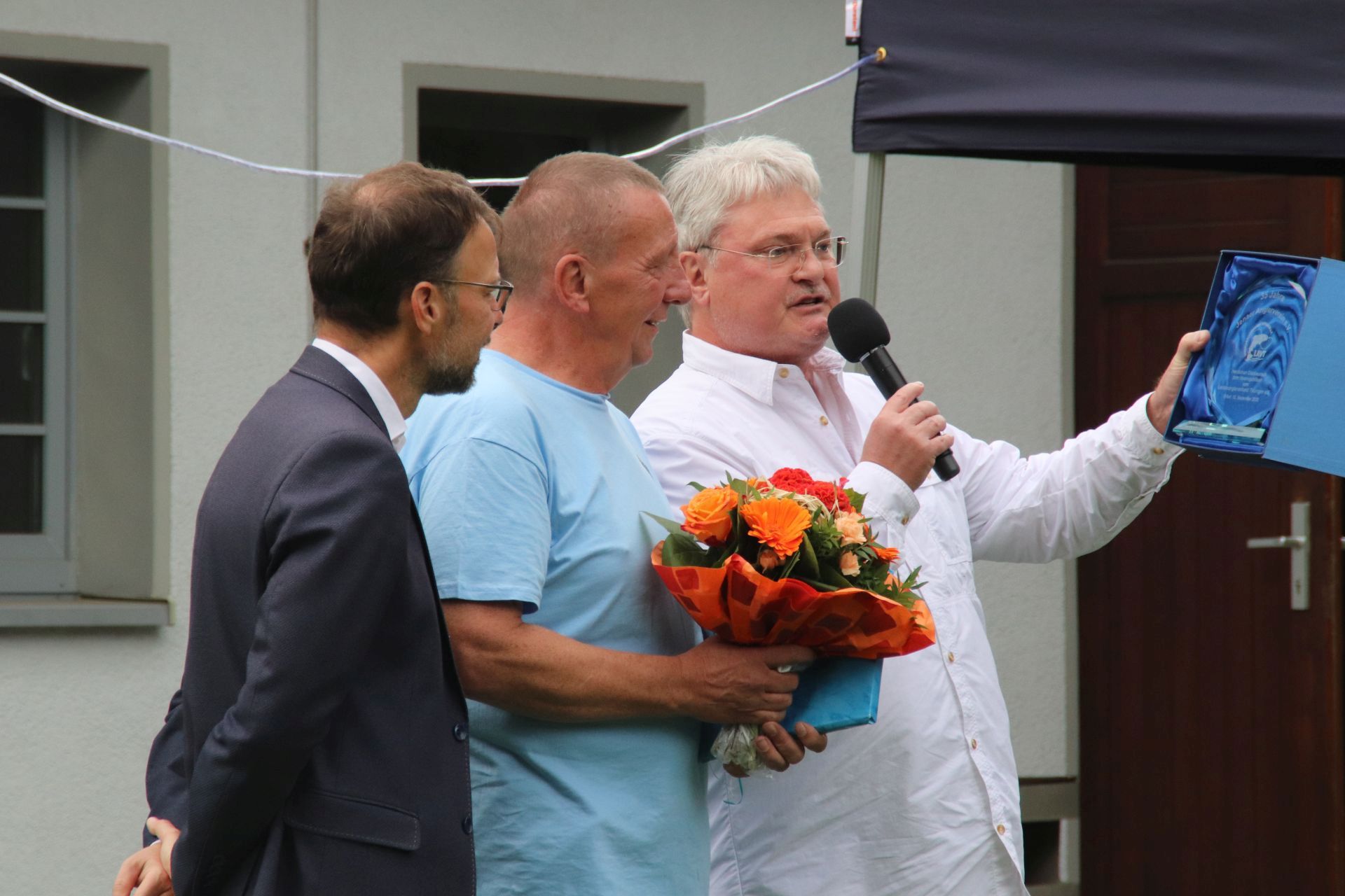 Für uns als Anglerverein ist es eine Ehre, dass unser Oberbürgermeister und Hr. Pleikies unsere Einladung angenommen haben, da es für uns nicht nur ein Zeichen von Respekt ist, sondern auch ein Zeichen des Interesses. Interesse an unserer Arbeit bezüglich des Gewässer- und Umweltschutzes, des Angelns und natürlich auch an der Jugend- und Vereinsarbeit. Auch unser Vereinsvorsitzender Ronald Hennig richtete ein paar Worte an alle Gäste.