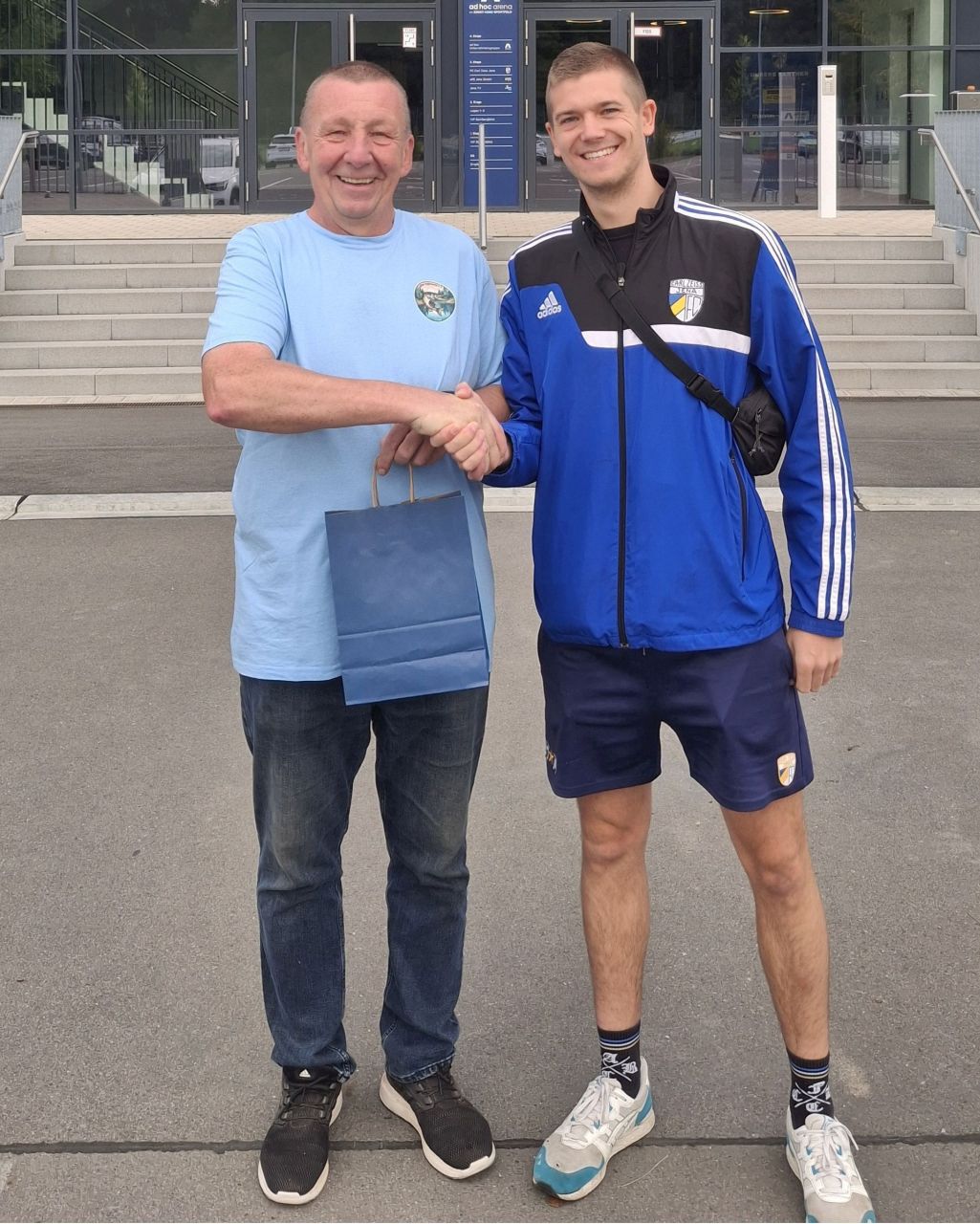 Veranstaltung noch mit Lukas Rödger vom FC Carl Zeiss Jena um das unterschriebene Trikot