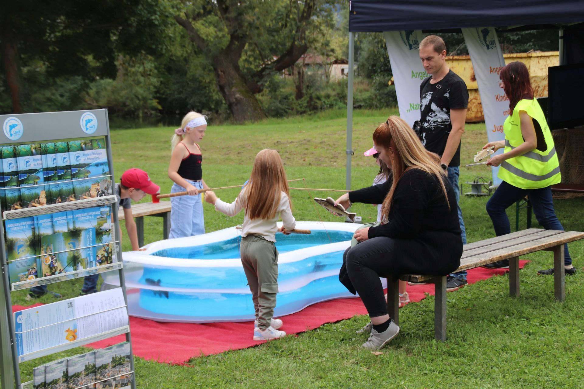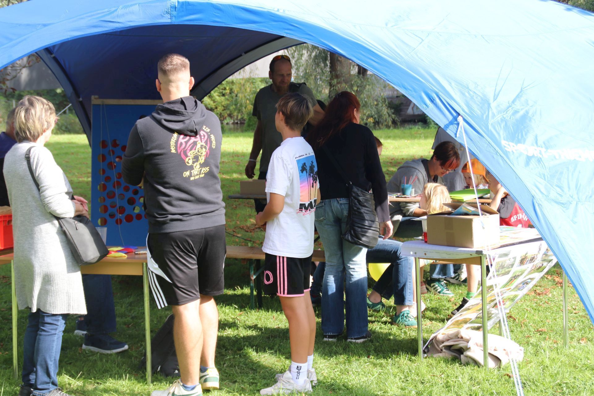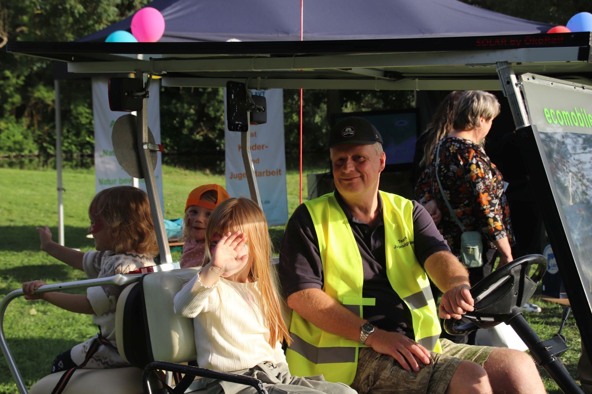 Nach den Eröffnungsreden wurde dann das Kaffee- und Kuchenbuffet, der Verkauf der Tombola Lose, sowie auch unsere Spiel- und Spaß Attraktionen eröffnet. Es gab jede Menge zu entdecken. Der LAVT hatte den Drillsimulator mitgebracht, es durften im Wasserbecken Plastikfische geangelt werden, Kinder wurden geschminkt, es wurde auf der Hüpfburg gesprungen, Fußballkicker gespielt und vieles mehr. Die Feuerwehr und die Polizei waren auch jeweils als Gäste vor Ort, um den Kindern (aber auch Erwachsenen) etwas zu zeigen oder auch um Gespräche zu führen. Wer sich etwas ausruhen, aber dennoch in Bewegung bleiben wollte, hatte die Möglichkeit sich mit dem Sun eMobil durch das Gelände fahren zu lassen.