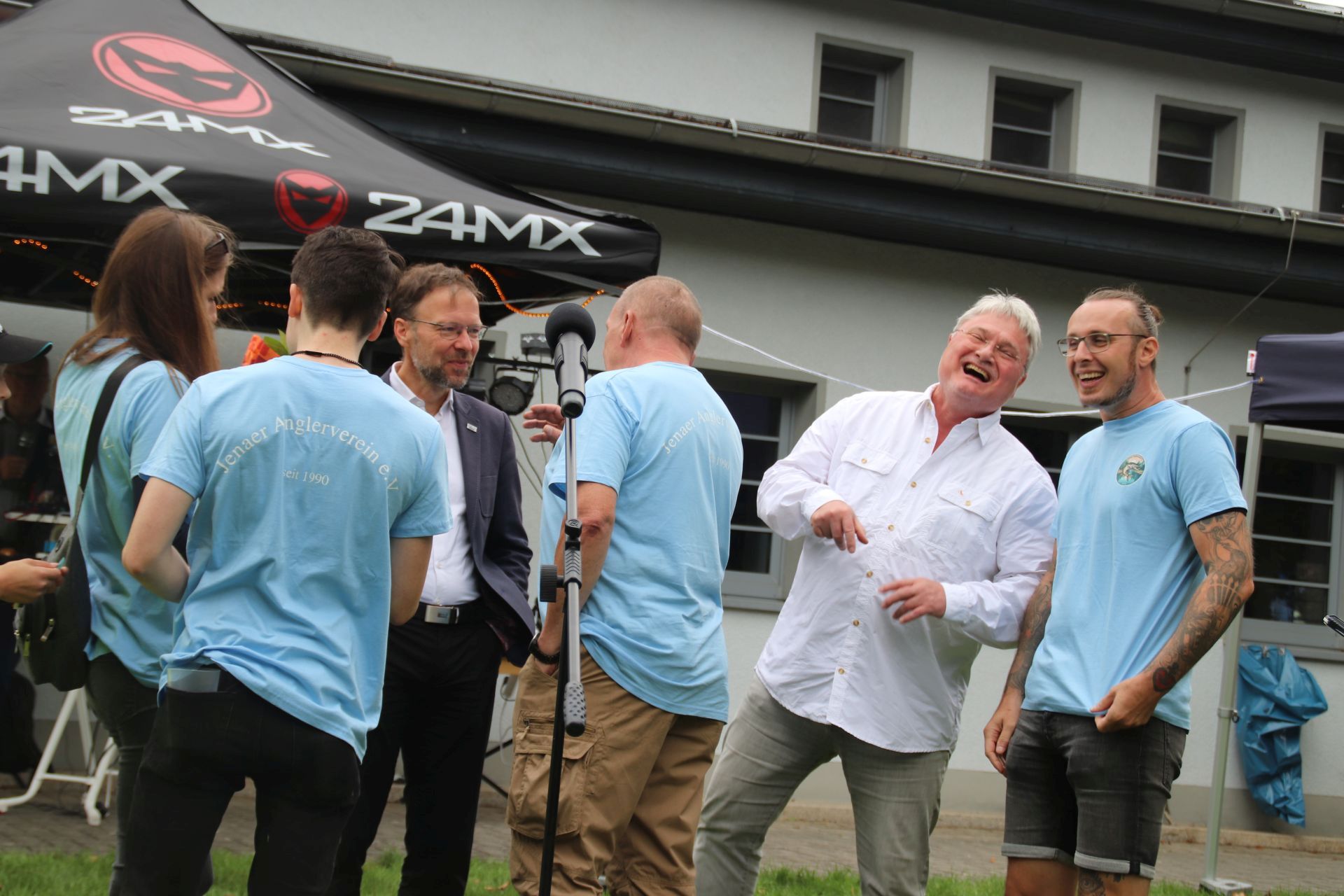 Für uns als Anglerverein ist es eine Ehre, dass unser Oberbürgermeister und Hr. Pleikies unsere Einladung angenommen haben, da es für uns nicht nur ein Zeichen von Respekt ist, sondern auch ein Zeichen des Interesses. Interesse an unserer Arbeit bezüglich des Gewässer- und Umweltschutzes, des Angelns und natürlich auch an der Jugend- und Vereinsarbeit. Auch unser Vereinsvorsitzender Ronald Hennig richtete ein paar Worte an alle Gäste.